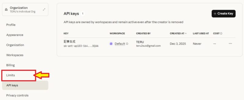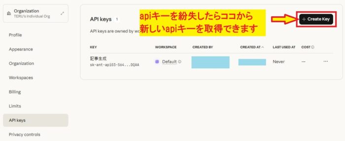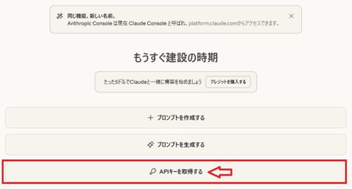 Claude APIキーは、下記のURLから入手できます。