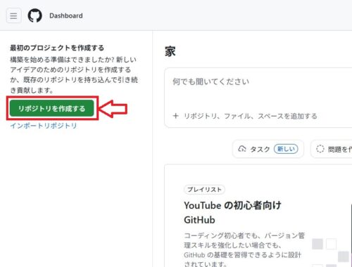画面の左側にに表示されている「リポジトリを作成する」ボタンをクリックしましょう。