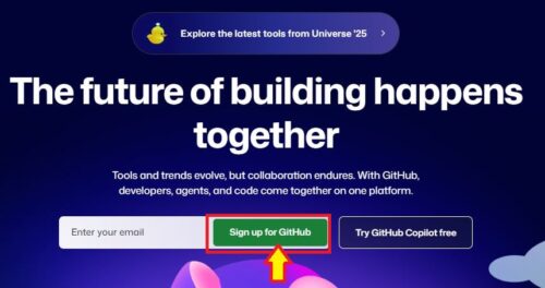 「Sign up for GitHub」をクリックしてください↓