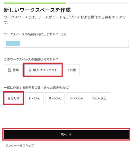 ワークスペースの名前を何にしますか?