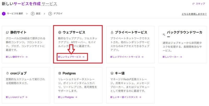 再度「新しいウェッブサービス」をクリックしてください↓
