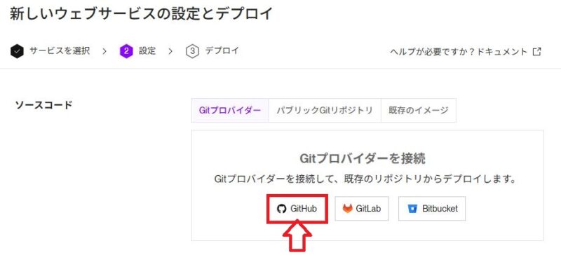 次の画面のGitプロバイダーを接続で、