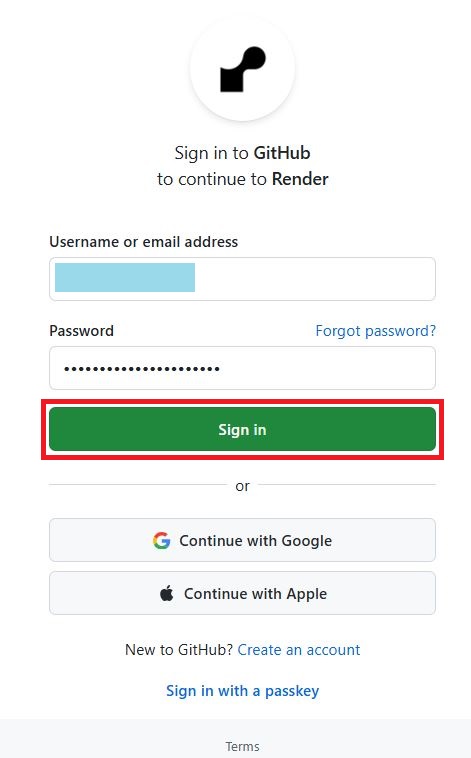 下記からRenderのアカウントを作成してください(無料で使えます)。