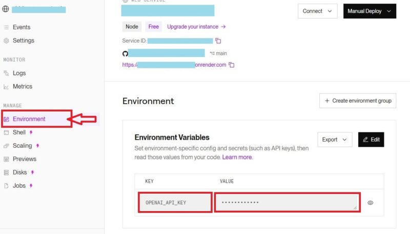 「RENDER」は、OpenAI APIキーを安全に暗号化して稼働させるところです。